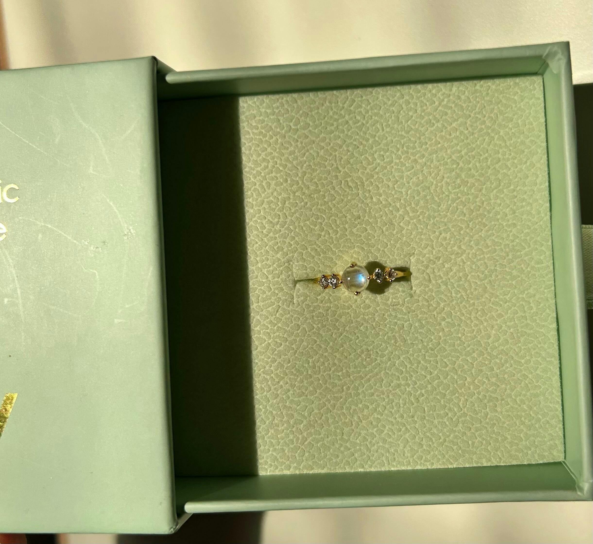 Cloudy - Dainty Moonstone Ring and White Topaz 18K